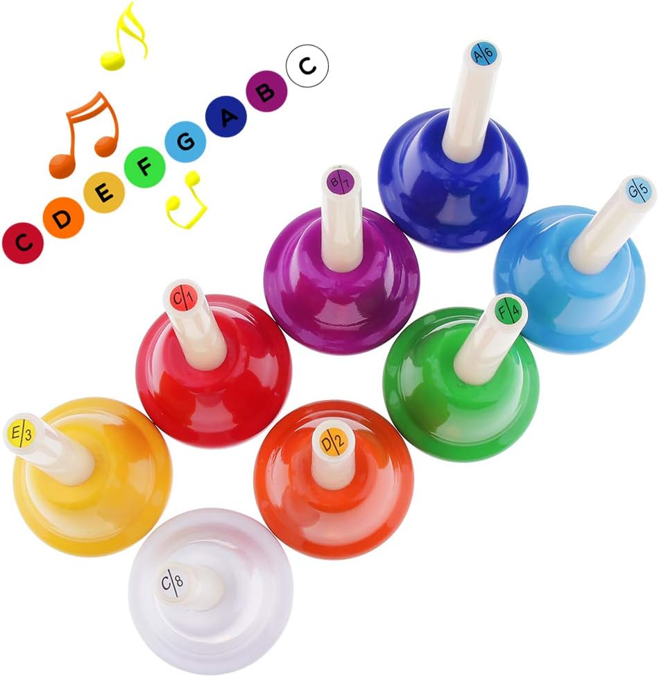 Music Hand Bell, Alnicov Rhythm Band Kids Play Hand Bells, 8 Sound, 8 Color Musical Bell for