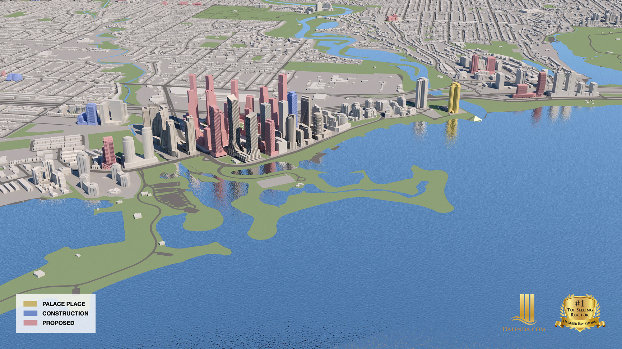 Together, they will build 15-towers, with heights ranging from 16 to 70-storeys. These lands are municipally known as 2150 Lake Shore Blvd W, 2194 Lake Shore Blvd W, and 23 Park Lawn Road. Humber Bay Shores Map showing proposed new condos. Rendering of what a completed Christie site will look like.