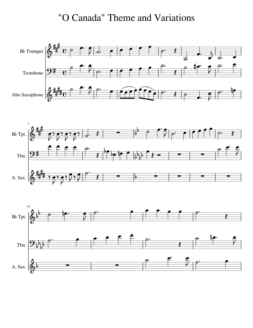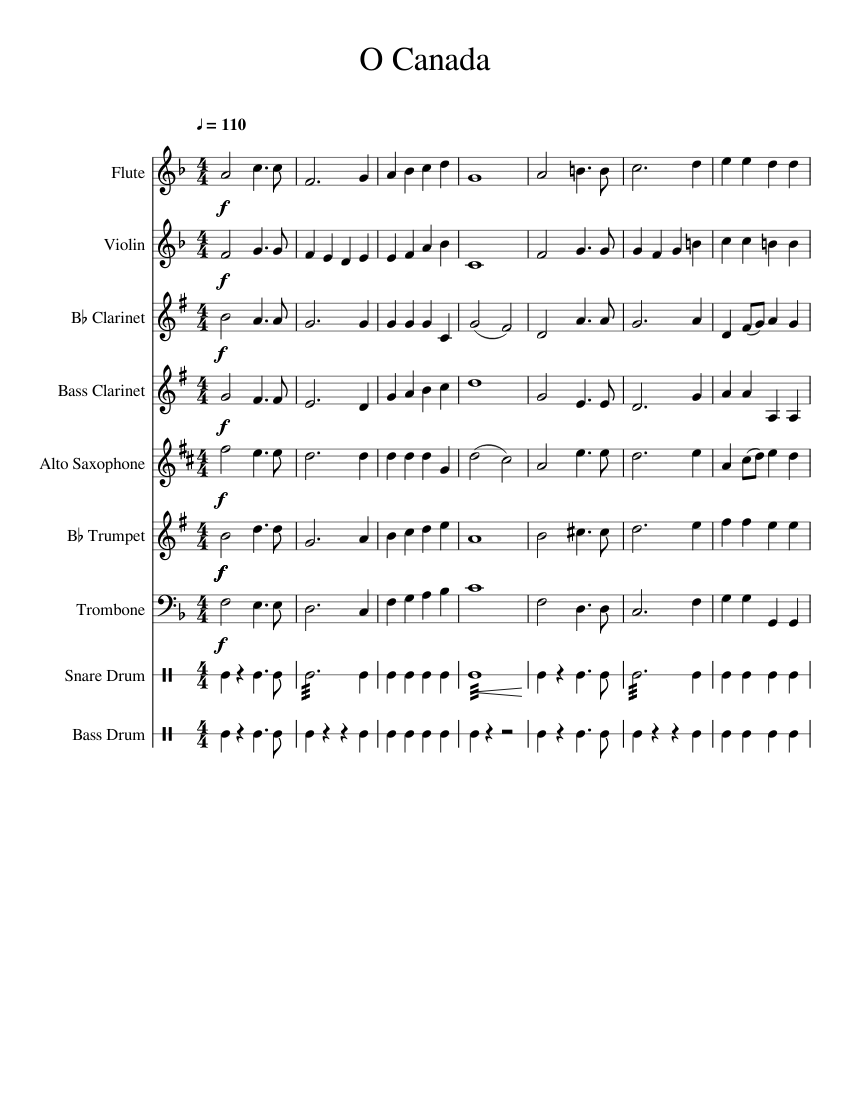 O Canada Sheet music for Flute, Violin, Alto Saxophone Download free in PDF or MIDI
