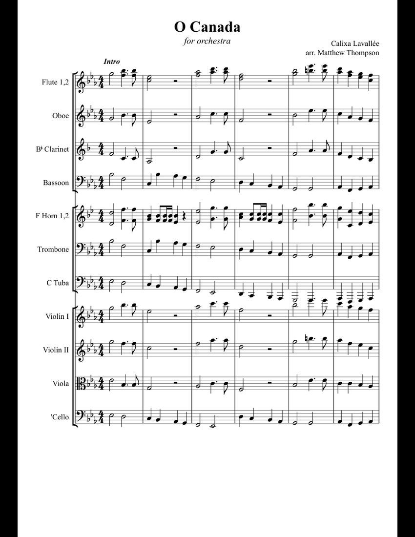Music notation created and shared online with Flat. Play the music created online using Flat. Community.. Blog. Sign up. Log in; O Canada. By Stanley Yin. 0 followers • 6 scores. Published about 5 years ago. Show more. Like 1 like. Share. 9 plays / 311 views. Nicolas For The First Note, An Natural E Would Be Better. Reply • about 1 year.